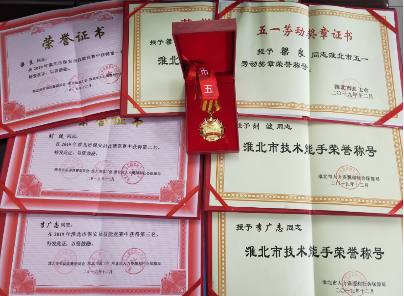 全市保安員技能競賽,第一名淮北市保安有限公司梁良,被市總工會授予“淮北市五一勞動獎章”榮譽稱號,被市人力資源和社會保障局授予“淮北市技術能手”榮譽稱號;第二名淮北市保安有限公司劉波、第三名淮北市保安有限公司李廣志被市人力資源和社會保障局授予“淮北市技術能手”榮譽稱號。