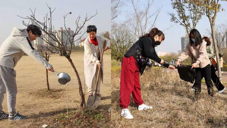 女職工們在公園內認真地清掃和拾撿地面及綠化帶里的垃圾、雜物,為園區內的樹木松土澆水,大家的志愿行動為淮北市民提供了干凈整潔的休閑娛樂環境。