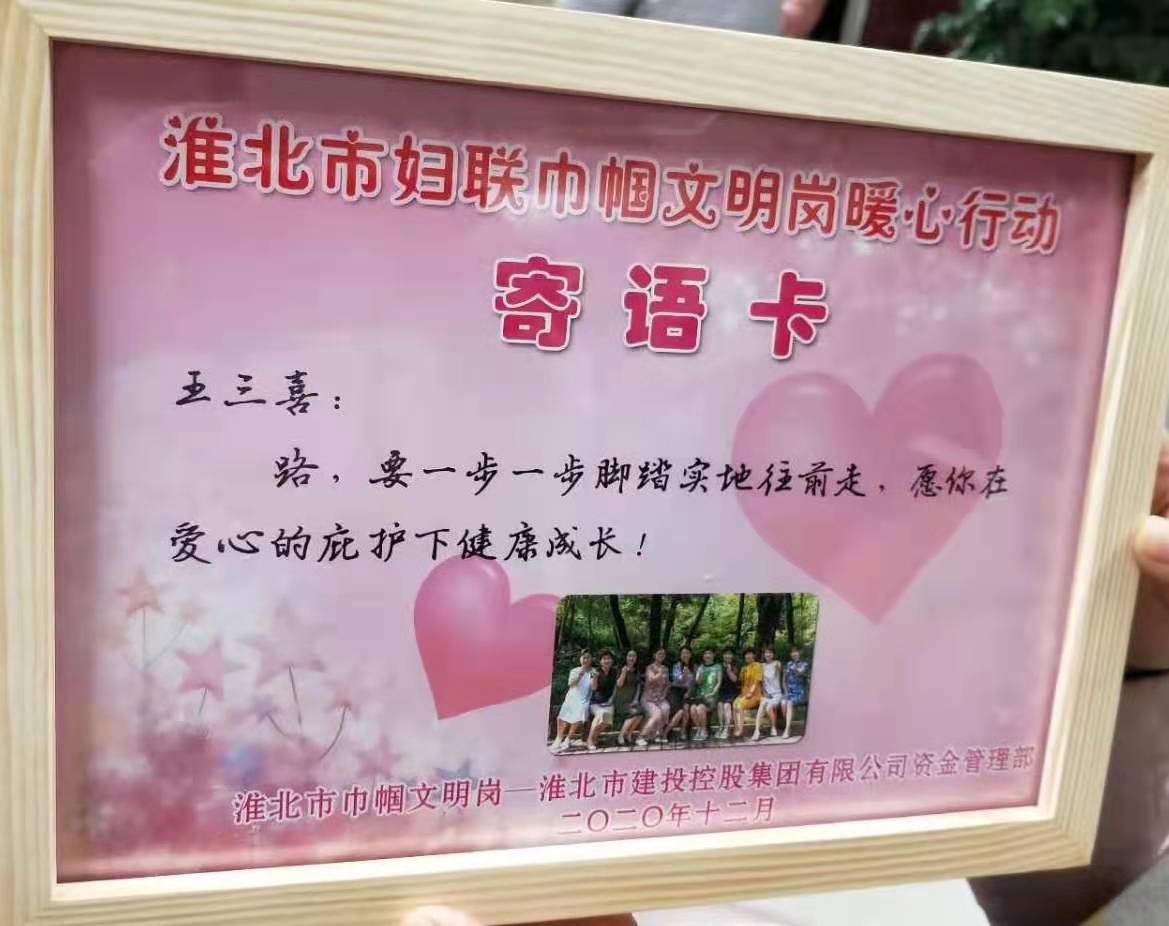 圖為12月10日市建投集團資金管理部代表參加淮北市“巾幗文明崗暖心行”活動——走進百善,為百善鎮16 名貧困兒童送去圖書、學習用具以及勵志寄語,溫暖了貧困兒童的心。