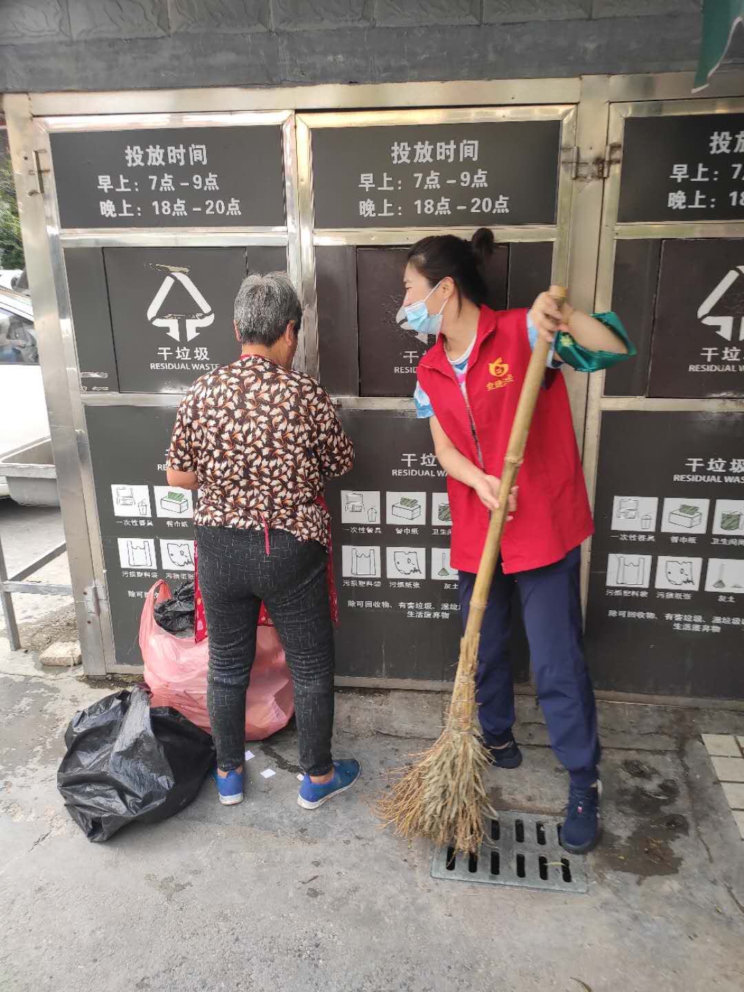 黨員志愿者們通過發放垃圾分類指導手冊,向居民介紹垃圾分類和垃圾亂倒的危害,宣傳垃圾分類的意義、類別和方式,詳細介紹四類垃圾所對應的性質及具體種類,引導居民們正確進行垃圾分類。黨員志愿者們及時清掃居民投放垃圾時掉落的垃圾,保持小區環境的衛生整潔。