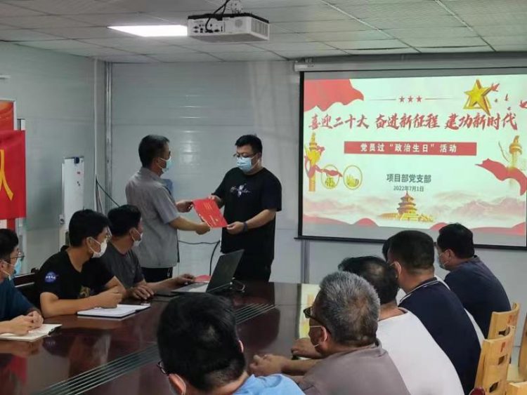 為慶祝中國共產黨成立101周年,喜迎黨的二十大,引導黨員干部進一步堅定理想信念、牢記初心使命,7月1日上午,淮海建工公司項目部黨支部開展“為黨旗添彩,為黨徽增光”主題黨日暨黨員過政治生日活動。