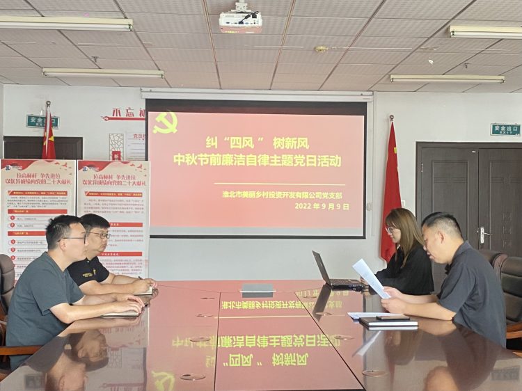 中秋將至,為進一步強化全體黨員的廉潔自律意識,推動公司黨風廉政建設向縱深發展。9月9日,美麗鄉村黨支部組織全體黨員開展糾“四風”樹新風節前廉潔自律主題黨日活動。