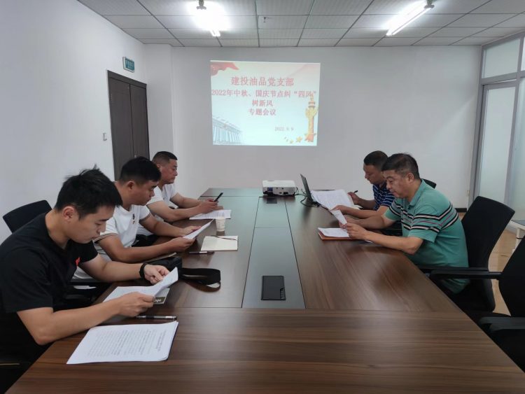 建投油品黨支部2022年中秋、國慶節(jié)點(diǎn)糾“四風(fēng)”樹新風(fēng)專題會(huì)議