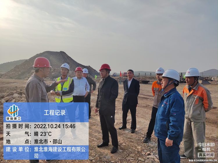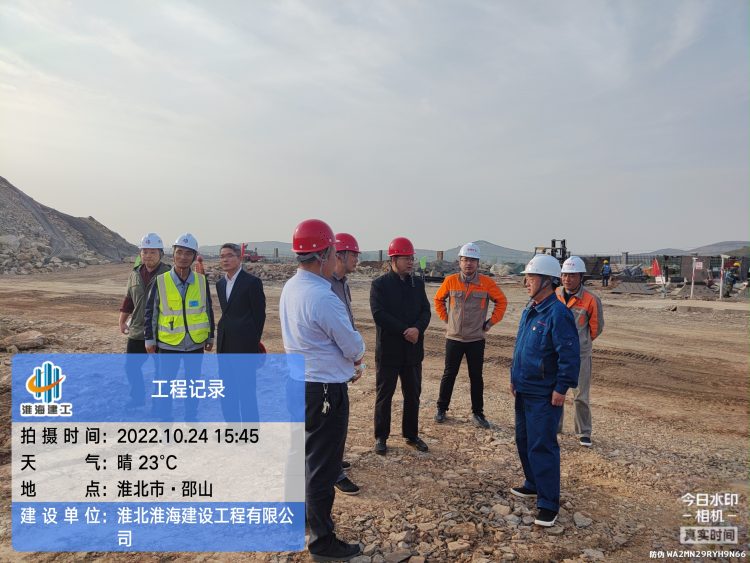 在施工現場,張立哲詳細了解十月份工程施工進度、與淮海建工項目負責人深入交談,協商解決項目建設中遇到的困難和問題,并就安全生產、工程進度等工作提出要求。