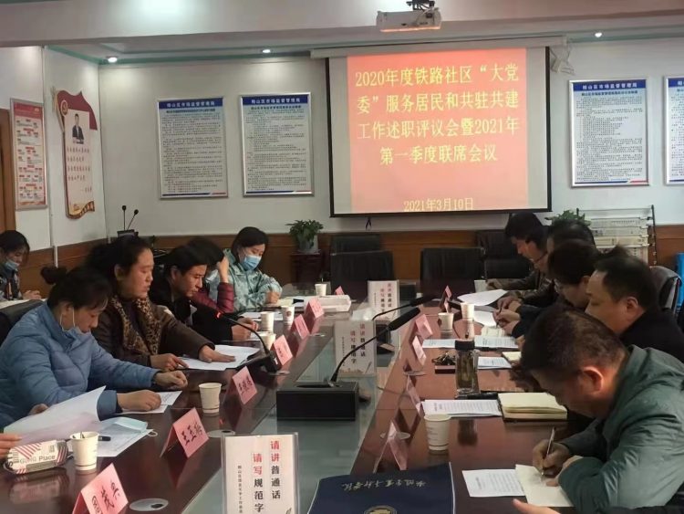 3月10日下午,在鐵路社區會議室,城泊公司黨支部參加鐵路社區2020年度“大黨委”成員服務居民和共駐共建情況述職評議會暨2021年度第一季度聯席會議。
