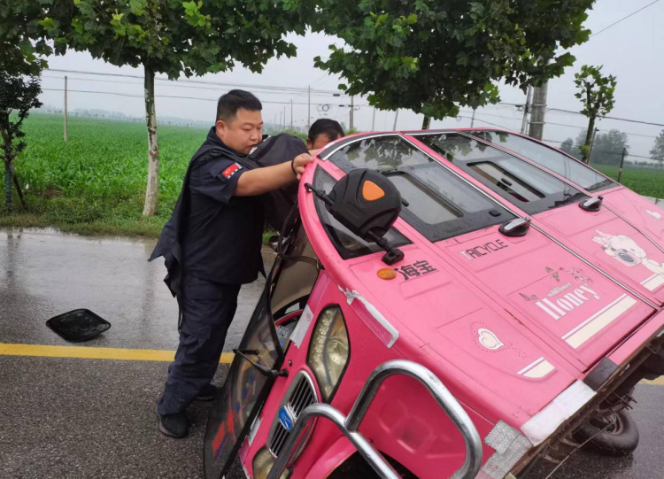 7月13日上午,淮北市保安公司押運三中隊車組在結束任務返回途中,發現前方道路中央一輛電動三輪車發生側翻并有人呼救,情況十分危急。車長王見仔細觀察周圍環境確保無危險因素,立即將現場情況匯報給中隊,中隊決定按照應急處置預案對側翻車輛予以幫助。收到命令,王見在確保周邊安全的情況下,為受困人員抬起電動三輪車,幫助拾取散落物品并撥打了120。