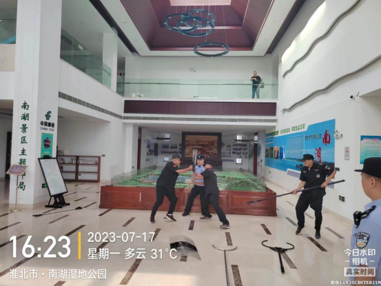 為了有效防范突發(fā)傷害事件,切實保障景區(qū)游客及員工人身安全,及時處置侵害人員安全的惡性事件,增強在真實情景下維穩(wěn)人員的心理素質和反恐防暴意識,提高員工應對處置能力,2023年7月17日下午16點,南湖公園公司聯合公安局烈山分局開展安全防暴防恐模擬演練活動,本次演練制定了詳細、周密的反恐防暴應急演練預案,參加演練的部分員工,模擬突發(fā)傷害事件發(fā)生情況,進一步提高了對突發(fā)傷害事件的防范能力。
