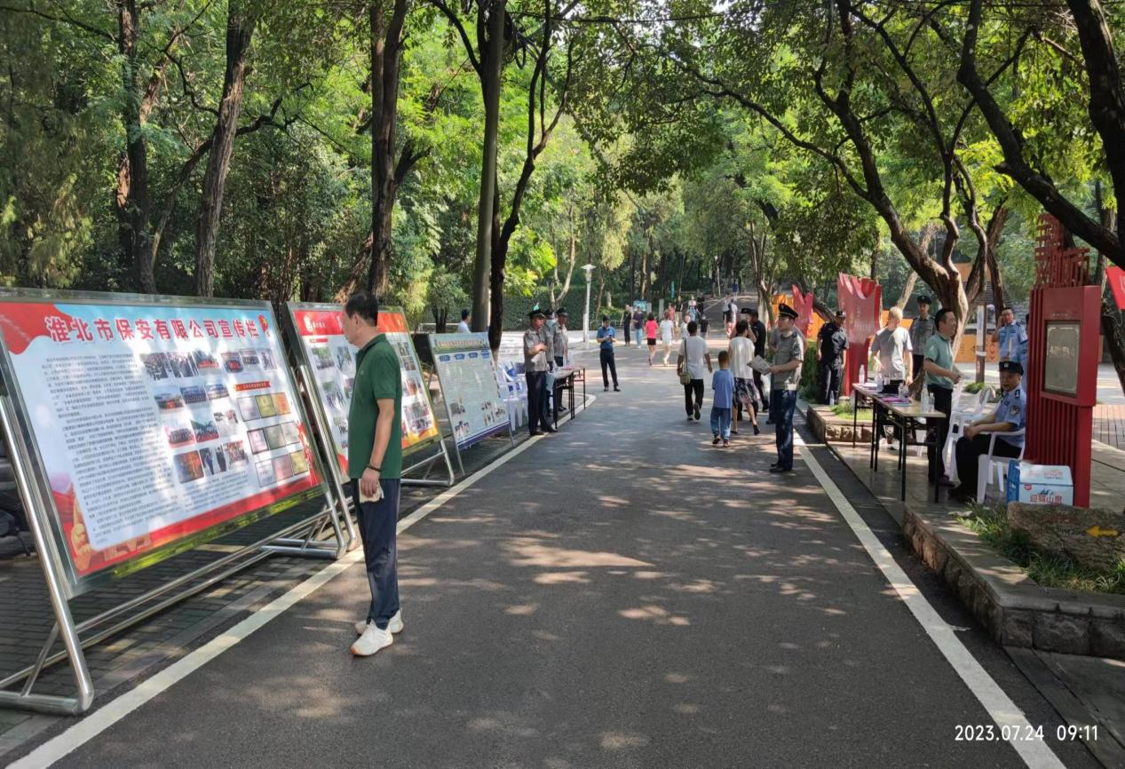 7月24日上午,為廣泛宣傳保安行業在維護社會和諧穩定、保障人民安居樂業、促進經濟社會發展等方面取得的成效。淮北市保安監管支隊、淮北市保安有限公司在相山公園組織開展以“保安心向黨、護航新征程”為主題的保安行業宣傳活動。市保安監管支隊支隊長孫兆良、政委曹輝、公司總經理吳信威、押運人防隊員等13人參加了宣傳活動。