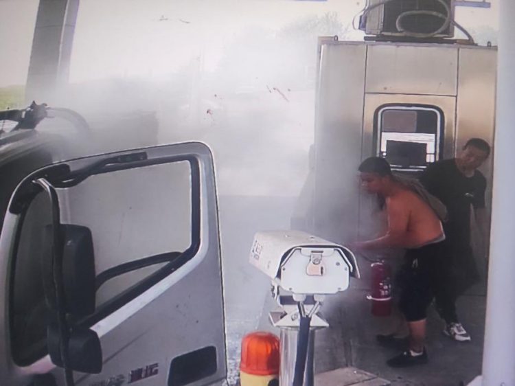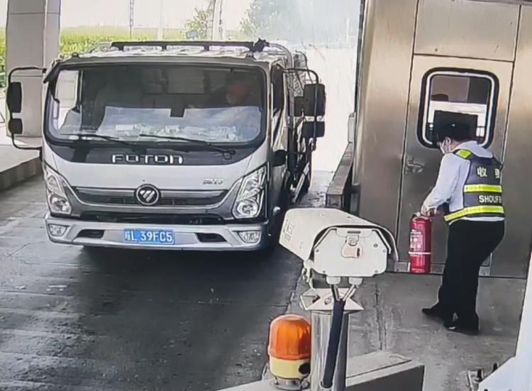 9月4日14時51分,一輛牌照為皖L39FC5的物流貨車途經S202淮北收費站正在繳費時,當班收費員縱方珠發(fā)現車廂內冒出煙霧,判斷是車上貨物發(fā)生自燃,現場十分危急,在立即通知了收費班長之后,迅速從崗亭拿出滅火器配合司乘展開滅火救助。當班班長盛勇、副班長孫克即刻組織人員把車推出車道并進行交通指揮,以保障其余車輛的安全暢通。由于發(fā)現撲救及時,在不到1分鐘的時間內撲滅了火源,最大程度減少了貨物財產的損失,保障了司乘人員及車輛的安全,從而遏制了安全事故的發(fā)生。