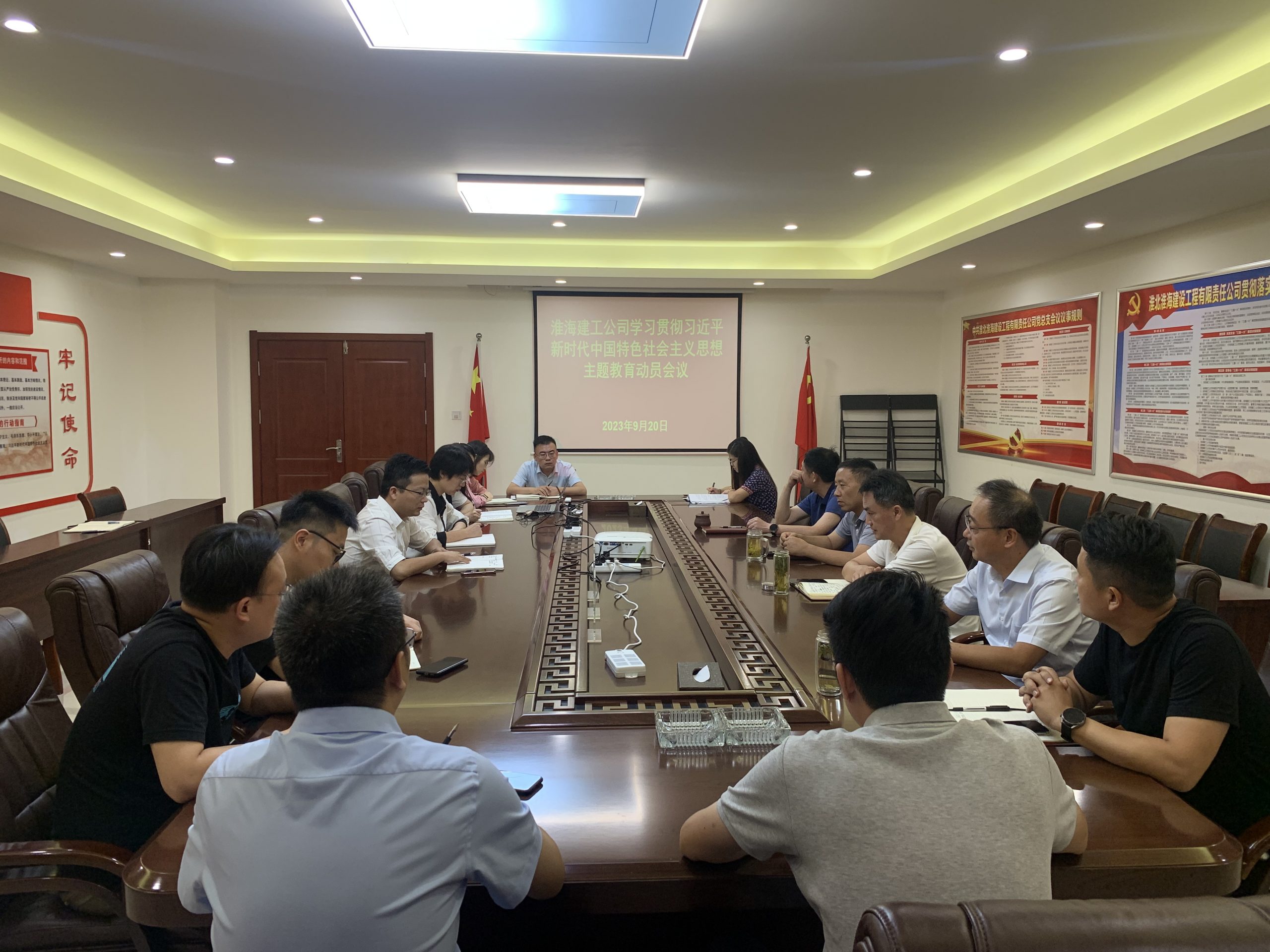 9月20日上午,淮海建工公司在三樓會議室召開學習貫徹習近平新時代中國特色社會主義思想主題教育動員會議,公司領導班子、各部室負責人參加會議。