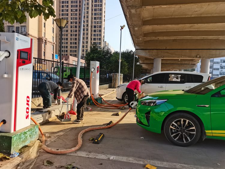 當天,城泊員工來到長山路橋下停車場,開展清掃活動,大家拿起掃把、鐵鍬全身心投入到大掃除中。職工們有的彎腰撿拾廢紙和垃圾,有的奮力清掃路面,有的來回清運垃圾,有的擦拭新能源充電樁的灰塵。大伙齊心協力認真細致, 個個干勁十足,不怕臟,不怕累,對任何一處垃圾都不放過,分區域逐步清理停車場的衛生死角,大大提高了現場工作效率,確保現場品質上臺階,努力打造出新能源汽車充電驛站示范點。