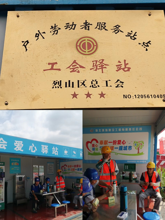 近日,淮海建工綠金新城二期項目工會驛站獲評烈山區總工會“三星”戶外勞動者服務站點。