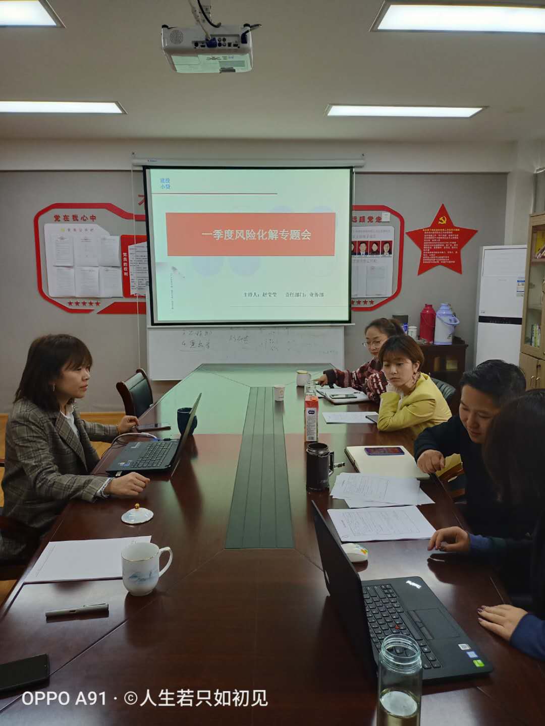 4月9日下午,小貸公司副總經理趙瑩瑩主持召開2020年一季度業務風險化解專題會,金控風控部部長李貞到會指導,會議聽取了業務部關于一季度業務開展情況的匯報;經過討論,會議制定了風險化解措施,明確主體責任,加大處置力度,降低貸款風險。