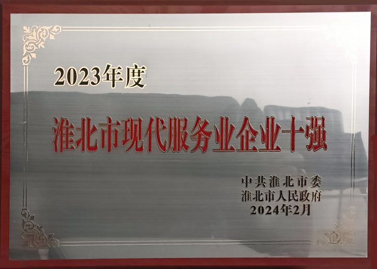 淮北市建投商貿有限公司再次榮獲全市“現代服務業企業十強”榮譽稱號