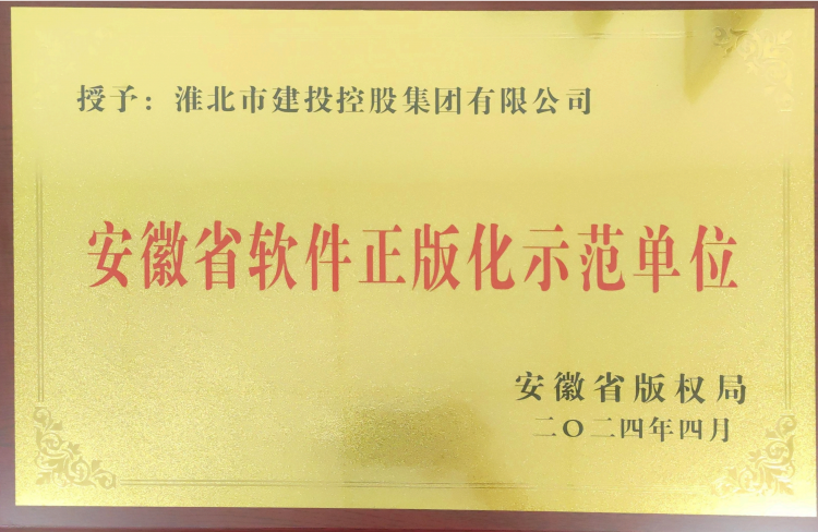 2024年4月2日安徽省版權局下發了《關于公布2023年度安徽省版權示范創建認定名單的通知》,認定淮北市建投控股集團有限公司等16家單位為“安徽省軟件正版化示范單位”。