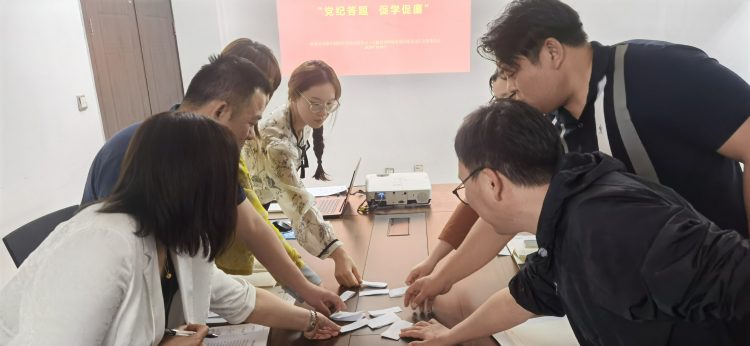 此次活動分為兩個階段。第一階段是支部書記對《中國共產黨紀律處分條例》進行解讀;第二階段采取黨員抽題的形式,根據自己抽到的黨紀題目進行現場答題并展開討論。