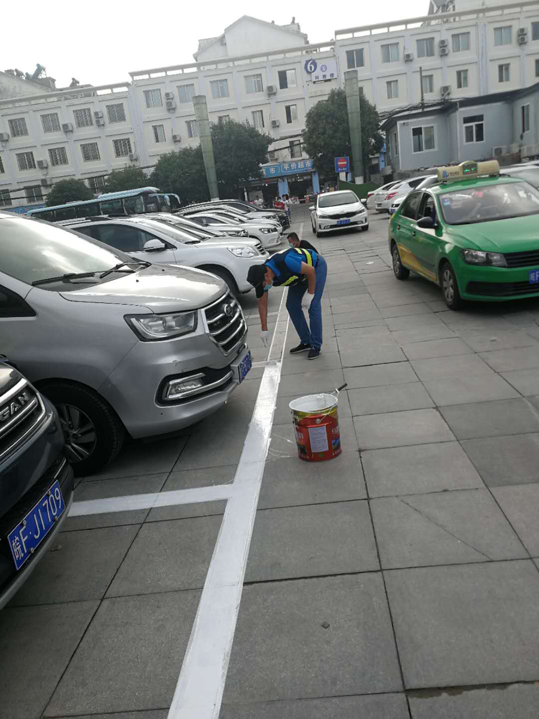 經過夏季暴雨的沖刷,加上車輛日復一日的碾壓,導致停車場的停車泊位線已斑駁不清。城泊公司緊緊圍繞創建全國文明城市工作要求,確保創城工作順利進行,進一步規范停車場停車秩序,組織公司員工對體育中心停車場及人民醫院住院部停車場污損的近400個停車泊位線及行車導向箭頭進行了復描。