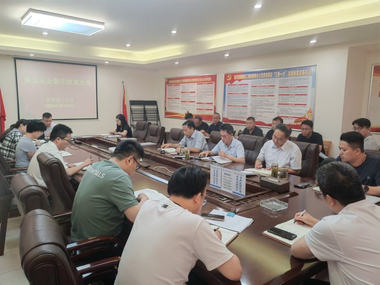 2024年6月13日上午,淮海建工公司召開廉潔從業警示教育大會,公司班子成員、部門負責人、項目經理參加了會議。