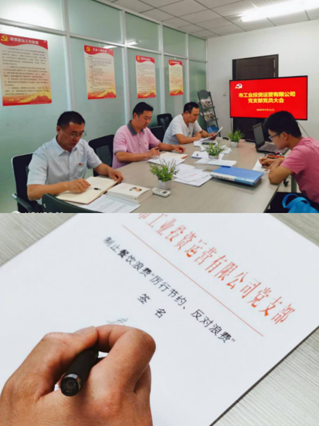 9月11日下午,工投支部在集團五樓黨員活動室召開黨員大會。首先按學習計劃學習了習近平談治國理政第三卷;2.傳達學習了淮北市建投控股集團有限公司黨委印發《關于深入學習宣傳貫徹習近平總書記考察安徽和在扎實推進長三角一體化發展座談會上的重要講話精神的落實方案》的通知;3.學習貫徹了《習近平對制止餐飲浪費行為作出的重要指示》并在現場舉行“厲行節約、反對浪費”簽名活動;4.傳達《關于兩起群眾身邊腐敗和不正之風問題》的通報;5.認真學習了集團公司意識形態工作秘密文件精神,研究部署意識形態領域風險隱患排查、突出問題整治工作,會議要求,始終堅持馬克思主義在意識形態領域指導地位的根本制度,把學習宣傳貫徹習近平新時代中國特色社會主義思想作為首要政治任務。通過實時查、重點查、研判查,全面梳理排查本單位意識形態領域風險隱患,列出問題清單、任務清單和責任清單,制定整治方案。
