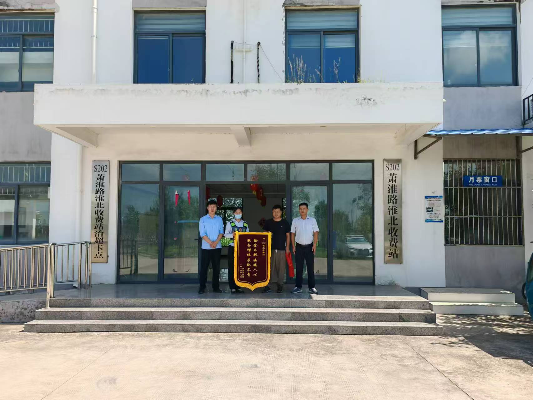 “真的謝謝你們,沒接到你們電話之前,我已經和家里的人找了好久了,一直不知道掉哪里了。感謝你們拾金不昧、樂于助人,送上小小錦旗,聊表謝意!”7月25日,在S202淮北收費站,失主孫先生送上錦旗一個勁地向工作人員道謝。