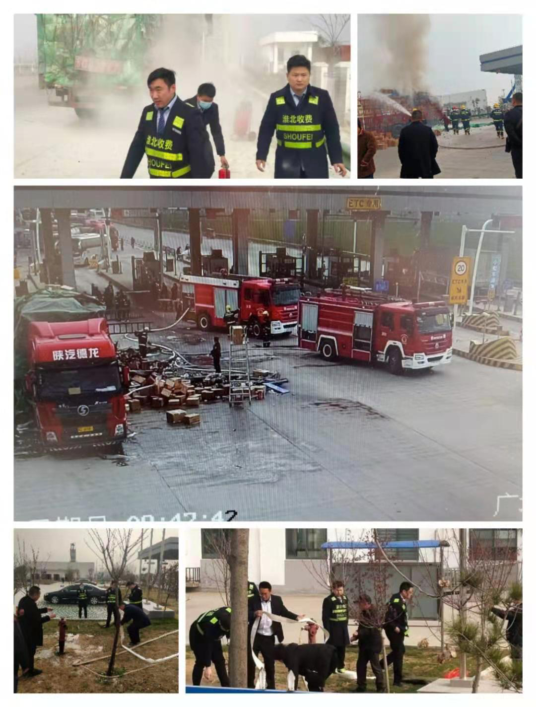 3月7日上午8:40分,一輛牌照為蘇CJ0381的物流貨車途經S202淮北收費站時因貨物自燃,突然起火,情況十分危急。在接到貨車駕駛員的求助后,副站長梁敏立即組織在站全體職工展開搶險救助。水電工孟光明迅速沖到消防栓前接通水源進行滅火救助,其他員工在值班站長的指揮下,按照日常消防演練和搶險自救規程,紛紛加入到滅火救助中,最終火勢得到了控制,最大程度減少了貨物財產的損失,保障了司乘人員及車輛的安全,也為濉溪縣消防救援大隊實施消防救援爭取了寶貴的時間。