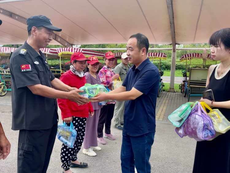 入夏以來,氣溫持續攀升,熱浪襲人,南湖公園工作人員堅守崗位,冒酷暑、戰高溫,為切實做好防暑降溫工作,2024年8月1日上午,南湖公園組織開展“夏日送清涼”活動,集團公司黨委委員、副總經理、文旅集團總經理趙焱同志一行前往南湖公園,為在高溫下堅持工作的員工們送去了清涼與問候。