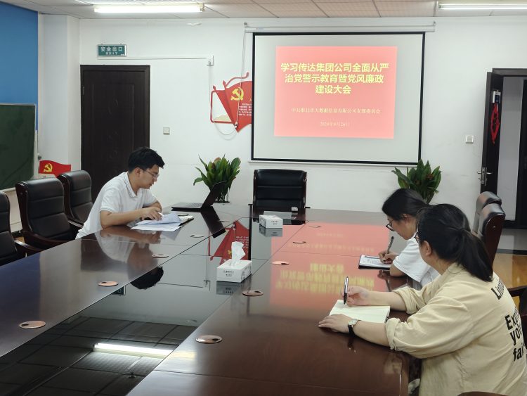 8月26日,大數據黨支部在五樓會議室召開學習傳達集團公司全面從嚴治黨警示教育暨黨風廉政建設工作會議,會議由支部書記楊旸主持,全體黨員參加了會議。