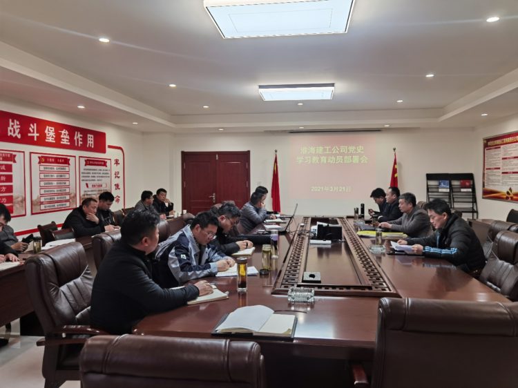 3月21日下午,淮海建工公司組織召開黨史學習教育動員部署會,認真學習《市建投集團開展黨史學習教育動員實施方案》,傳達集團黨委書記、董事長顧俊動員講話精神。