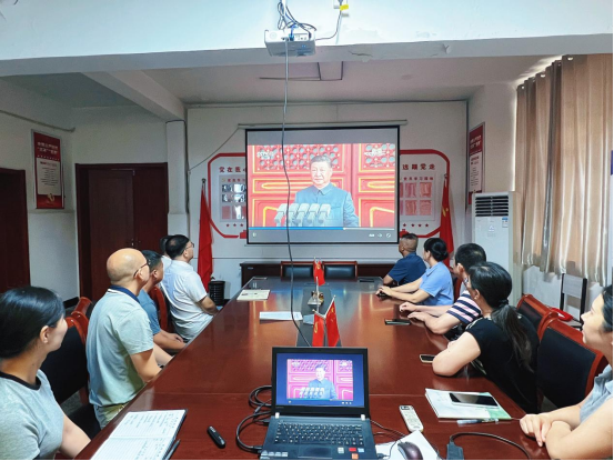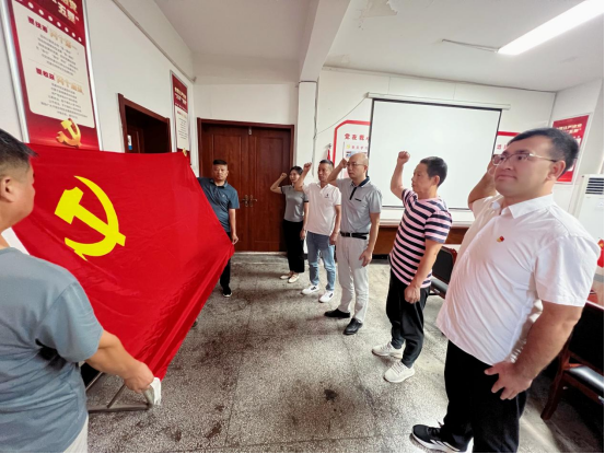 活動開始,全體人員集中觀看紀念中國人民抗日戰爭暨世界反法西斯戰爭勝利80周年大會。觀看過程中,大家保持安靜肅穆,認真感受閱兵儀式所展現出的國家強大軍事力量和軍人昂揚風貌,深刻體會到其背后蘊含的深厚愛國情懷與民族精神。整齊劃一的受閱方陣、先進精良的武器裝備,讓全體黨員心靈受到極大震撼,自豪感油然而生。閱兵儀式結束后,全體黨員面向鮮紅的黨旗,莊嚴地重溫入黨誓詞。“我志愿加入中國共產黨,擁護黨的綱領……” 鏗鏘有力的誓言在會議室久久回蕩,字字千鈞,叩擊著每位黨員的心靈。這不僅是對初心使命的回溯,更是一次精神的淬煉與升華。