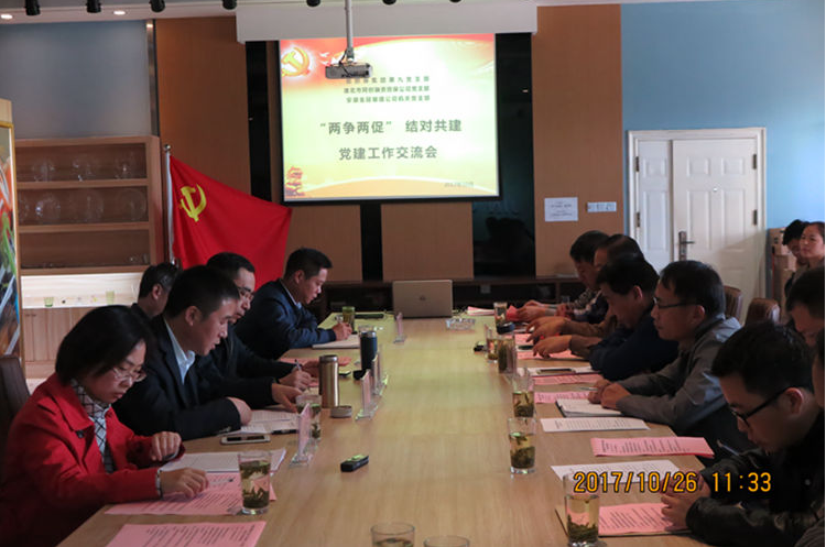 10月26日,同創融資擔保黨支部與安徽省信用擔保集團有限公司第九黨支部及安徽省金冠玻璃有限責任公司機關黨支部,在安徽省金冠玻璃有限責任公司黨員活動室開展“兩爭兩促”,結對共建黨建工作交流活動。