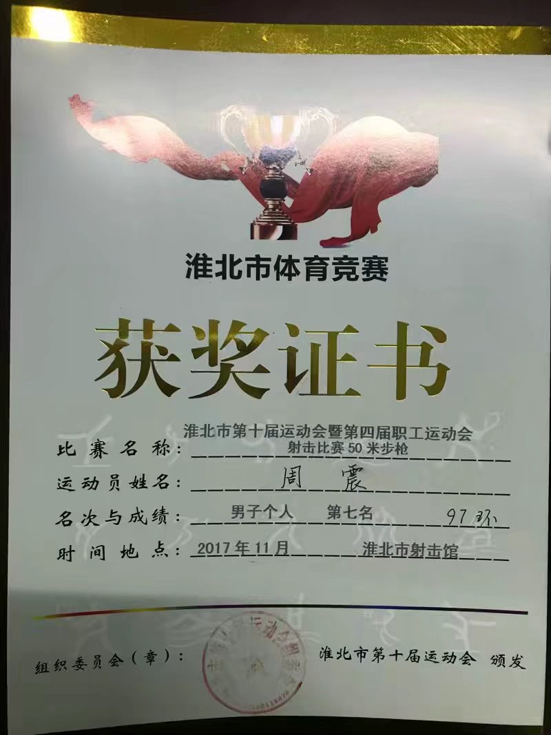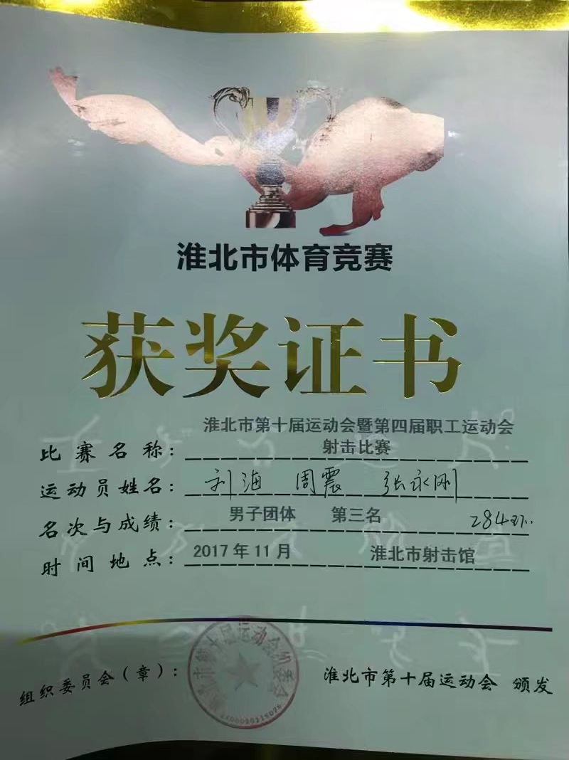市建投集團在淮北市第十屆運動會暨第四屆職工運動會射擊男子組比賽中榮獲佳績