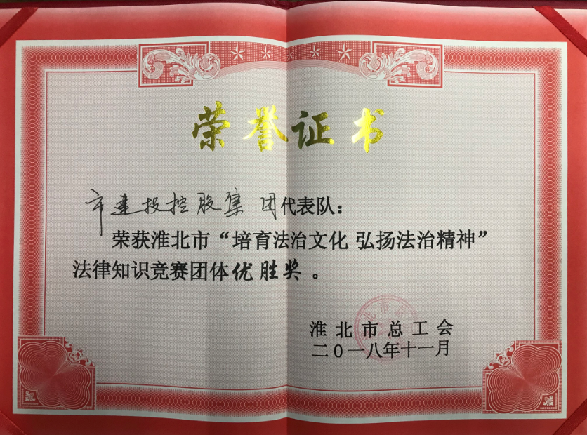 淮北市建投集團獲得淮北市職工法律知識競賽優勝獎
