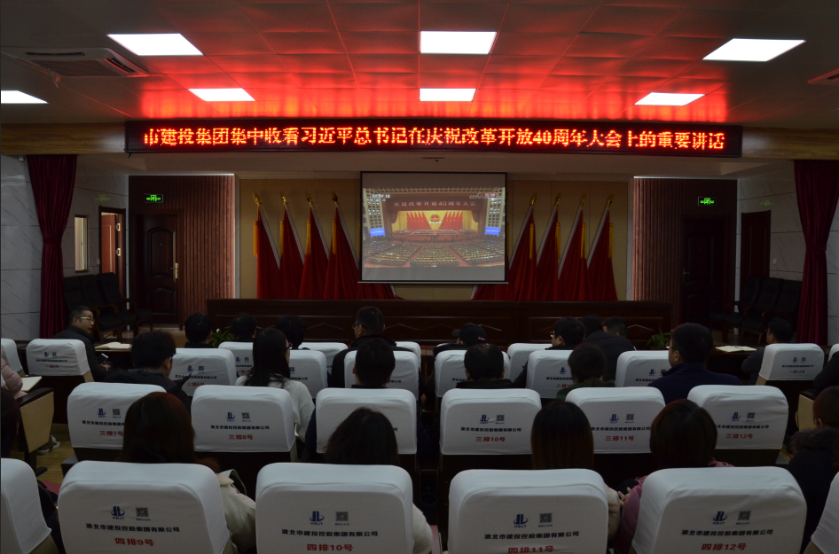 12月18日上午,慶祝改革開放40周年大會在北京人民大會堂舉行。中共中央總書記、國家主席、中央軍委主席習近平出席大會并發表重要講話。市建投集團23個黨支部、30余家子公司通過電視、互聯網等方式收看了大會直播盛況,近千人同步認真聆聽習近平總書記重要講話,共同分享改革開放40周年輝煌成果。