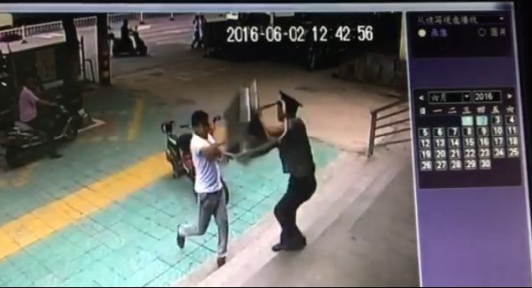 當(dāng)該男子逃跑至司法局樓下時,又對建行淮東支行進(jìn)行打砸,我公司派駐隊(duì)員劉相迎立刻出門制止,此時楊玉柱也以趕到,兩人合力將該男子制服,并與隨即趕到的派出所民警一同將其押送至東區(qū)派出所。