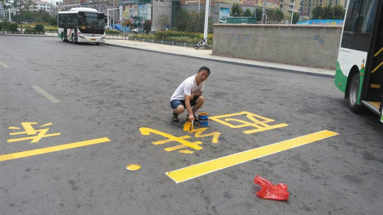 為方便市民快捷分清107路東線、西線車輛,近日公交第二分公司組織管理人員在107路火車站發車區涂刷油漆,明確東、西線車輛的停放。