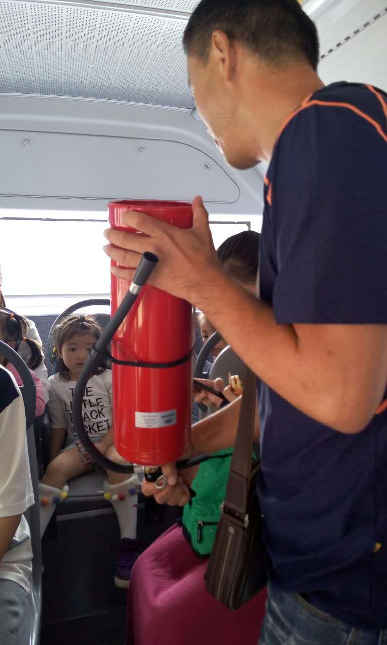孩子們在家長陪同下,來到107路實驗三小站臺,工作人員詳細向孩子們講解安全文明乘車需要注意的事項。如何有序地安全上、下車?進車廂內為什么要扶穩(wěn)坐好?在公交車上與親人走散后怎么辦?如何使用安全錘、滅火器等常見的安全問題,提醒孩子們及家長乘坐公交車一定要遵守乘車秩序,安全文明乘車。接著,工作人員邀請小朋友及家長乘坐107路公交車,并模擬乘車過程遇到急剎車等突發(fā)狀況時的情景。同時與小朋友們互動,演示安全錘和滅火器的使用方法,這一環(huán)節(jié)受到家長的鼓掌點贊。