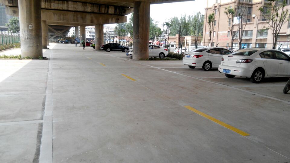 長山路橋停車場經過幾天緊張的施工,6月16日完成對地面停車泊位線及場內交通引導線的施劃工作。