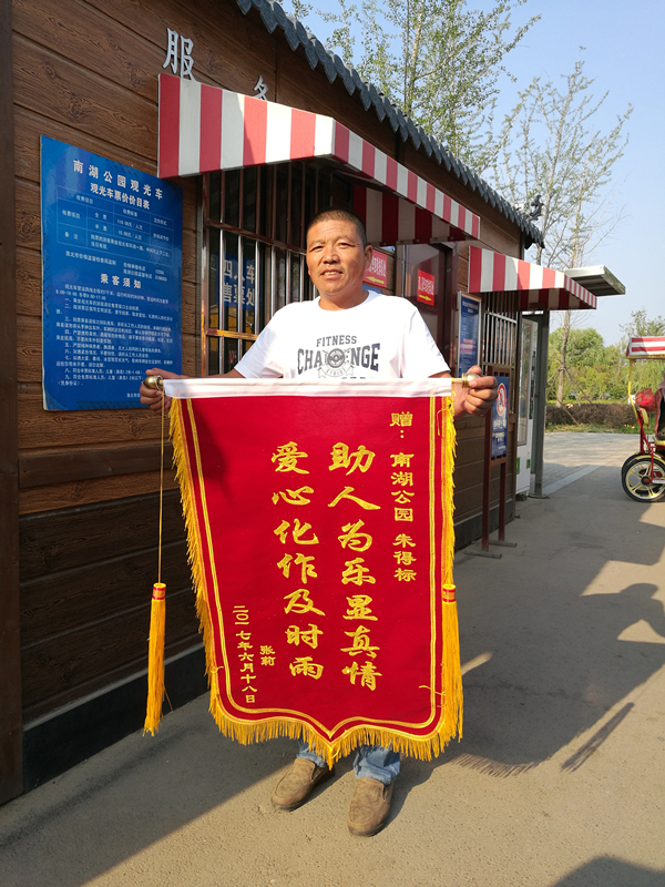 6月18日中午,淮北南湖景區觀光車駕駛班班長朱德標在駕駛觀光車工作時,撿到了一個背包,內有銀行卡數張,還有一張身份證和3700元現金。朱班長立刻將背包轉交給了淮北南湖景區游客服務中心的工作人員,委托景區尋找失主。景區工作人員在接到失物后,迅速做好了登記工作,通知各崗位的景區工作人員在景區內尋找失主。