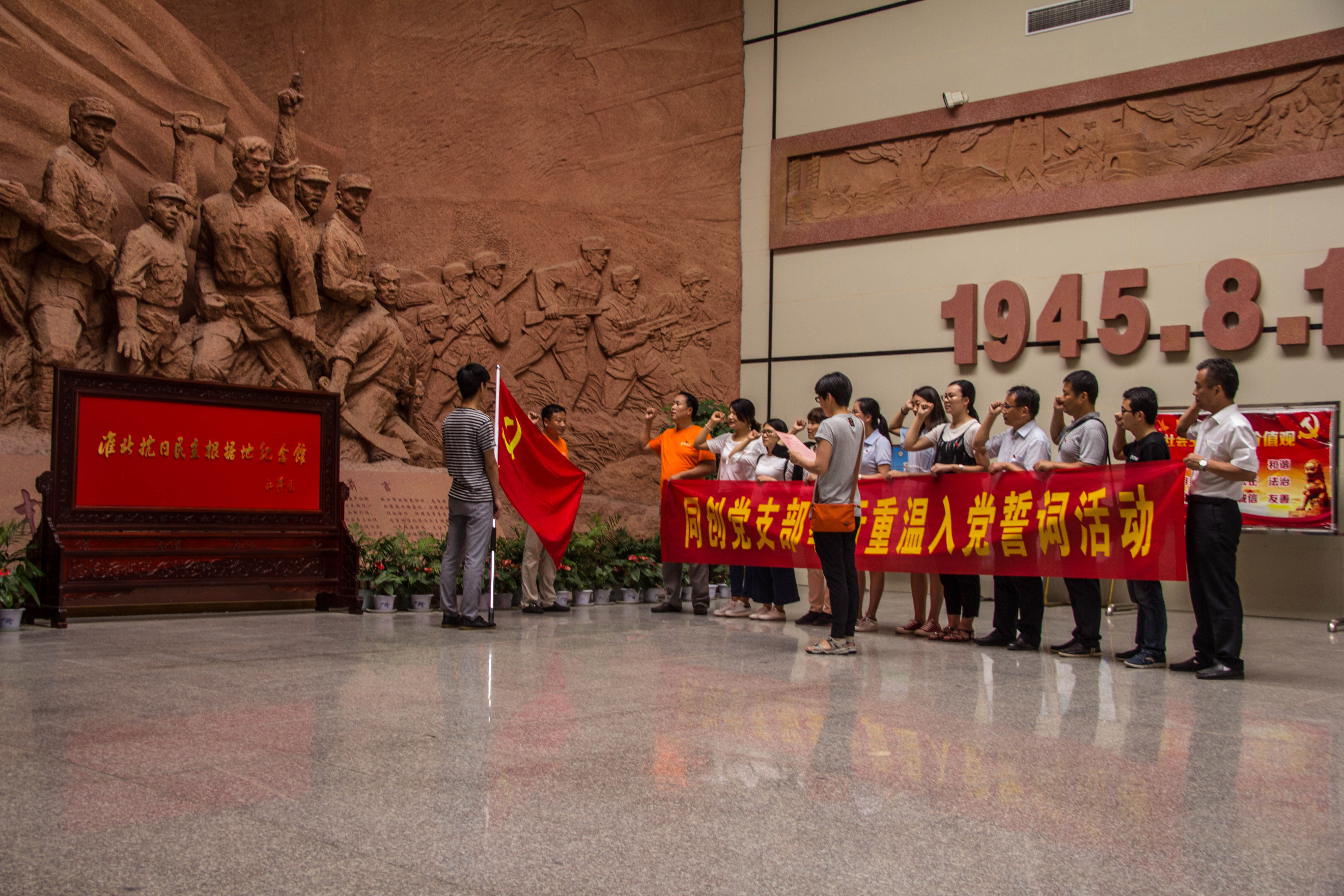 為慶祝中國(guó)共產(chǎn)黨成立96周年,貫徹落實(shí)全面從嚴(yán)治黨要求,推進(jìn)“兩學(xué)一做”學(xué)習(xí)教育常態(tài)化制度化,激勵(lì)廣大黨員在公司的奮斗熱情,同創(chuàng)擔(dān)保集團(tuán)黨支部于7月2日組織全體黨員及入黨積極分子前往淮北抗日民主根據(jù)地紀(jì)念館參觀學(xué)習(xí),重溫入黨誓詞,接受黨員教育。