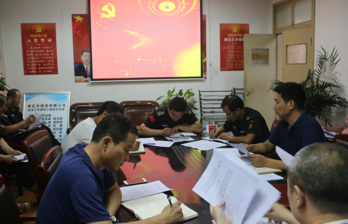 8月22日下午16時,淮北市保安有限公司組織召開領導干部及機關人員專題會議,傳達學習市委書記黃曉武調研建投集團時的重要講話精神,研究部署貫徹落實講話精神的有關舉措。