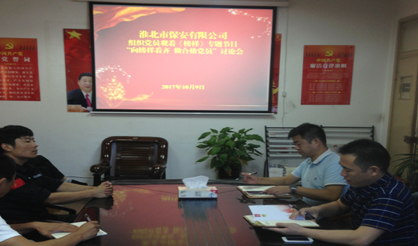 10月9日,保安公司黨支部在公司二樓會議室組織黨員集中收看《榜樣》專題片,觀看后就如何“向榜樣看齊,做合格黨員”進(jìn)行了討論,黨員們結(jié)合自身崗位實(shí)際,積極發(fā)言,談體會、談感受,找到了自己學(xué)習(xí)的榜樣。