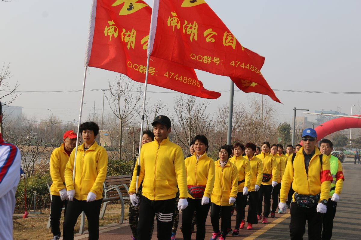 在冬日暖陽的南湖沿途賽道上,各隊紛紛打出"全民健身、利國利民""快樂健身、精彩人生"等條幅,用歡聲笑語點綴南湖景區環湖步道,在鍛煉身體的同時,又欣賞了南湖沿途的美景,在新的一年,共同進步,建設美好淮北。