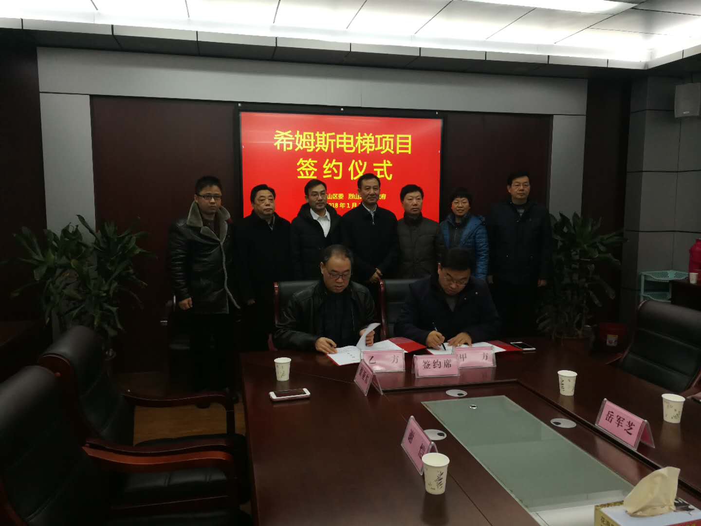 2018年1月30號上午,希姆斯電梯(淮北)有限公司與希姆斯電梯(中國)有限公司在淮北市建投集團簽定了《希姆斯電梯項目簽約協議》。淮北市烈山區區委書記張力、區人大主任陳琳、區長岳軍芝、區委副書記馬建國以及副區長鄧頂宇出席了此次簽約儀式,希姆斯電梯(中國)有限公司CEO龐文岳、市建投集團總經理助理周開宇、希姆斯電梯(淮北)有限公司CEO崔亞東、總經理謝愷以及負責人劉波共同見證了這一歷史性的時刻。