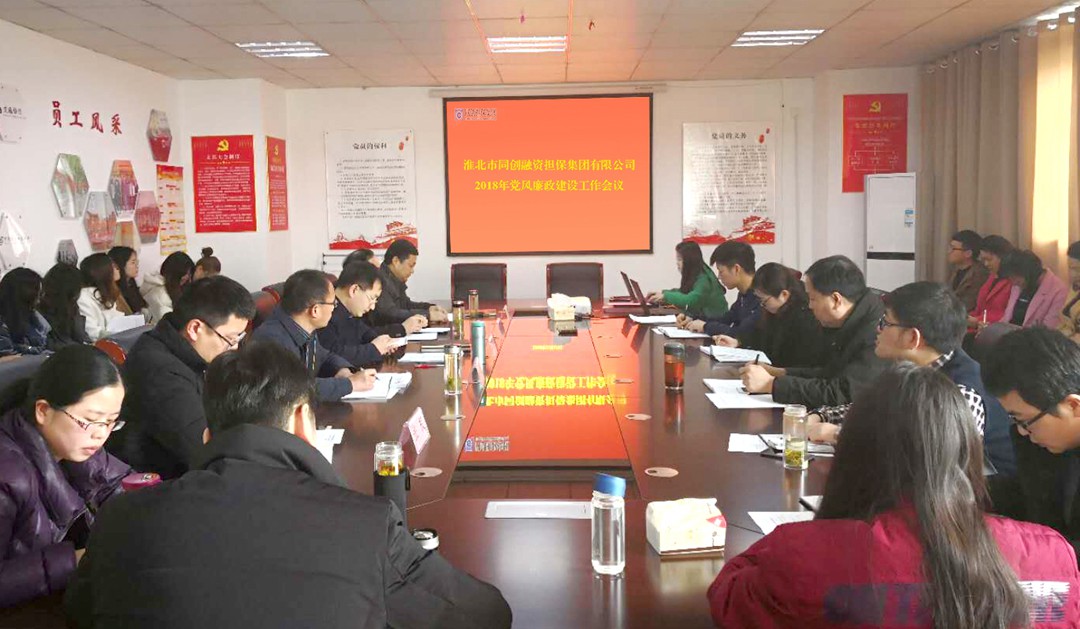 3月20日上午,同創擔保公司在三樓會議室召開2018年黨風廉政建設工作會議,同創擔保公司領導班子成員、各部室負責人、全體工作人員參加會議。