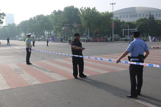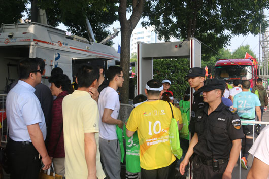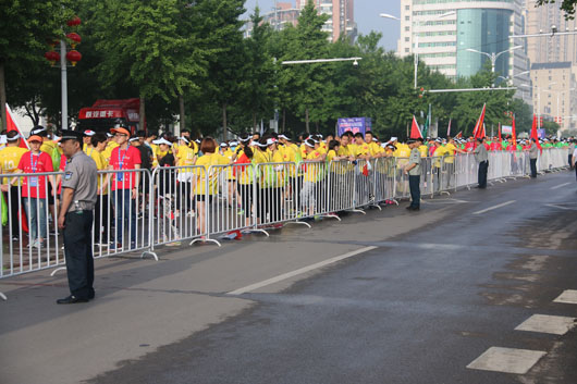 13日凌晨5:30分,負責市府廣場周邊區域的安保人員全部到崗。運動員入口安全檢查、重要部位值守、秩序維持、車輛指引、賽道沿線封閉防控等安保工作有序進行。