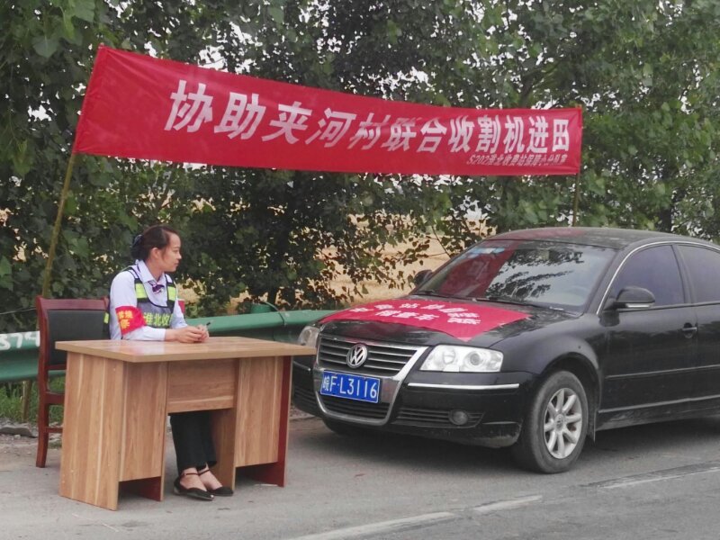 S202收費站設立協助聯合收割機進田服務點,有效挽回公司損失
