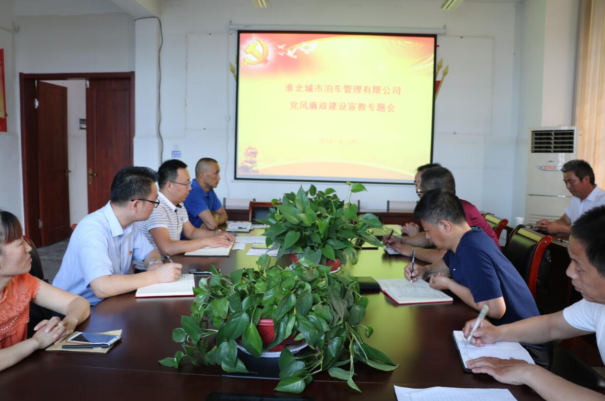 6月25日,城泊公司召開(kāi)了黨風(fēng)廉政建設(shè)宣教專題會(huì),公司全體黨員、管理人員、停車(chē)場(chǎng)班長(zhǎng)參加了會(huì)議。