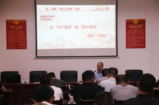 在最后開展的“書記上黨課”活動中,公司黨支部書記作了“從三個自信”到“四個自信”主題教育。告誡公司廣大黨員同志要倍加珍惜、長期堅持和不斷發展黨歷經艱辛開創的道路,高舉中國特色社會主義偉大旗幟,堅定道路自信、理論自信、制度自信、文化自信,貫徹黨的基本理論、路線、方針,為實現中華民族偉大復興的中國夢而奮斗。