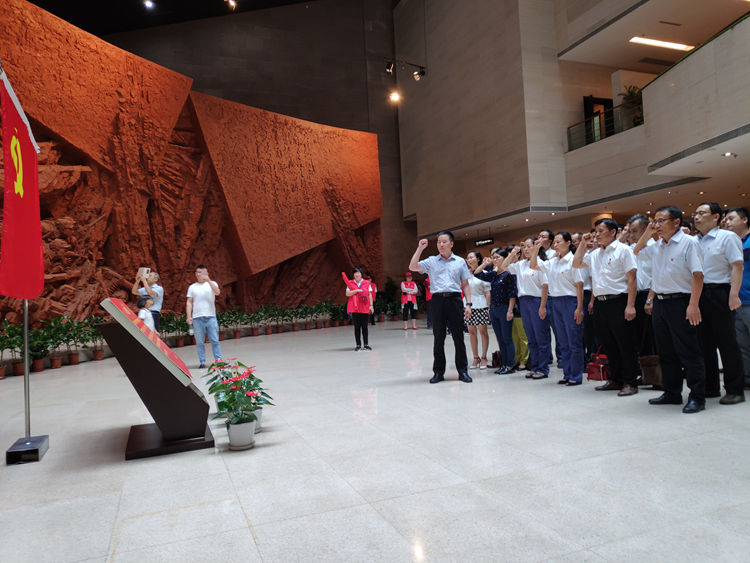 會后,全體黨員同志前往渡江戰役紀念館進行參觀學習。在紀念館一樓大廳,面對鮮紅的黨旗,三個支部的黨員領導干部重溫入黨誓詞,進一步堅定了黨員的理想信念,增強了黨員的責任感和使命感。