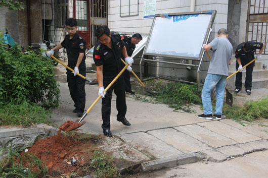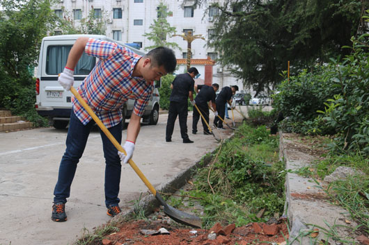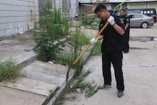 7月27日周五是保安公司黨員固定活動日。當天下午15時,在公司黨支部生活委員的帶領下十幾名黨員對公司附近綠化帶的雜草進行了集中清理。